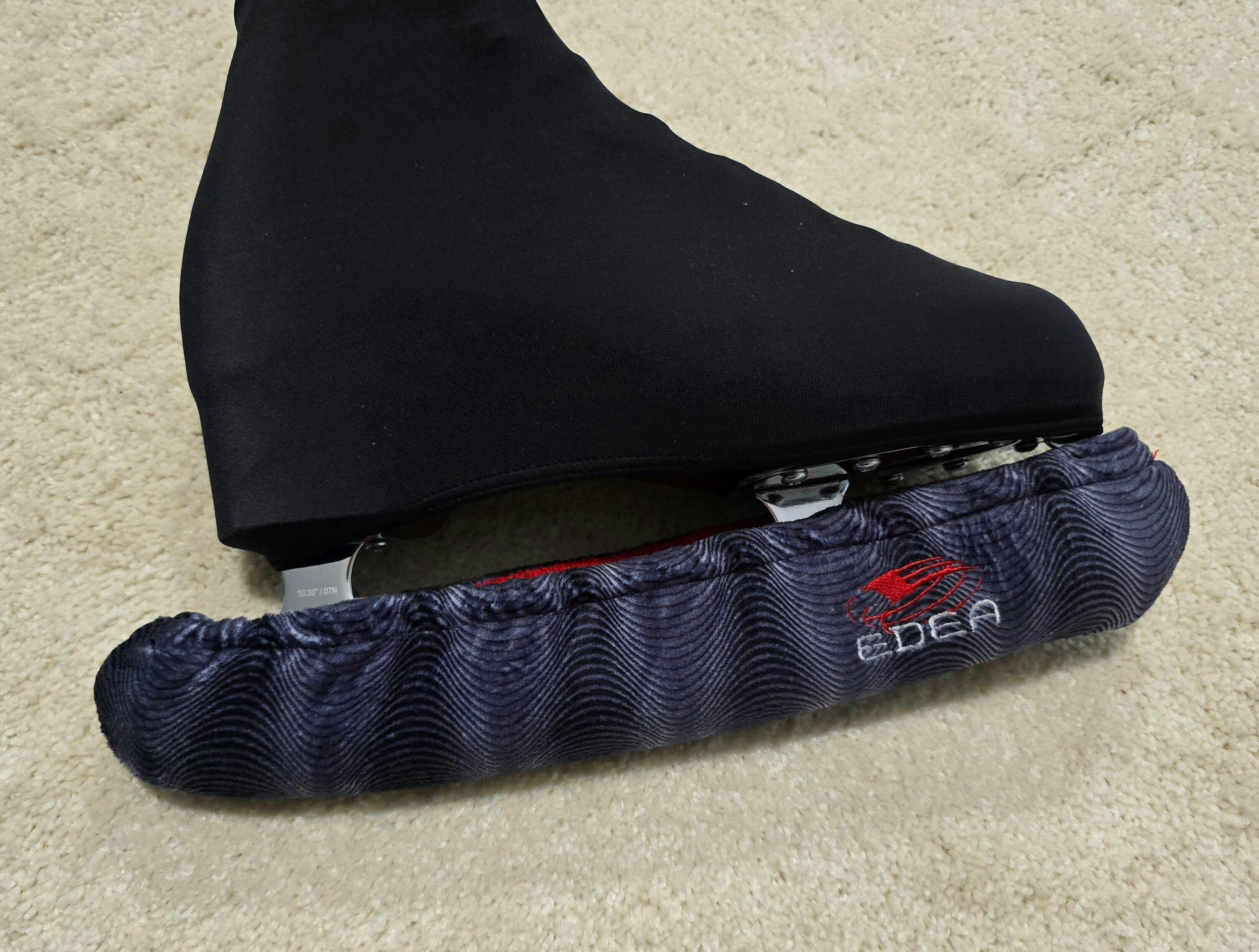Edean pehmeät teräsuojat, joissa kosteutta hyvin imevä sisus. Edean logo brodeerattu kangasosaan. Sisällä extravahvike suojaamaan terien kantteja.